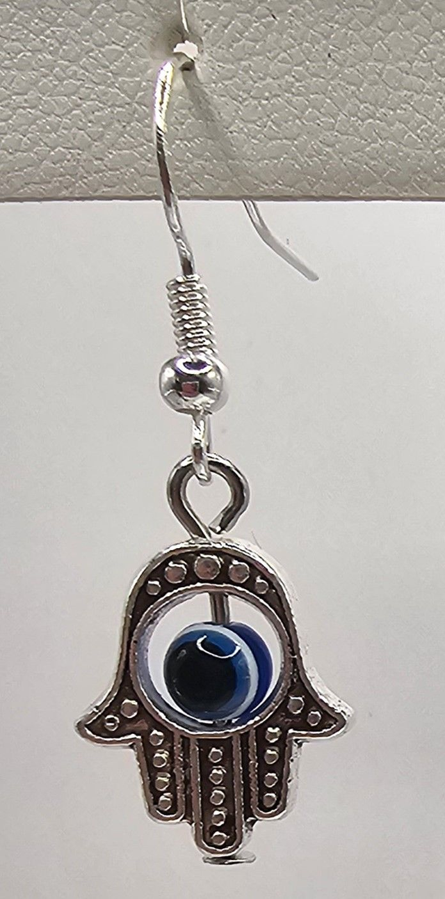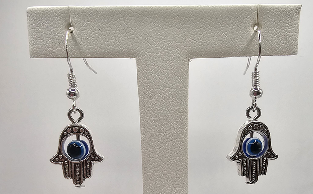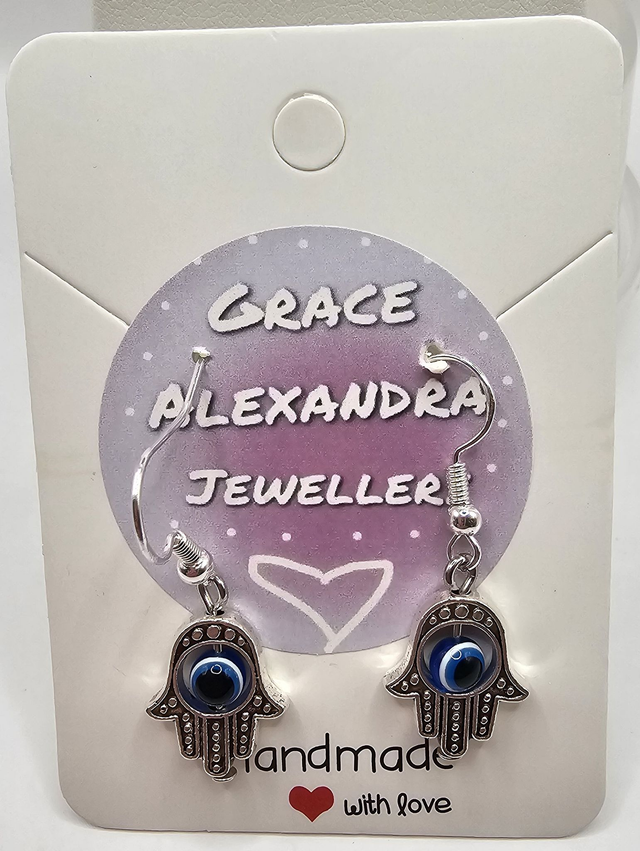 Introducing thes Tiberton Silver 'Hamsa Hand' earrings, attached to ‘925 Sterling Silver’ wire.
