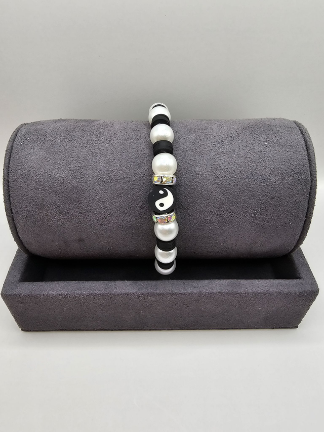 Introducing our Heishi Clay Bead & Faux Pearl 'Yin-Yang' Bracelet - a perfect addition to your jewellery collection! Hand-crafted with black clay beads & faux pearls.
