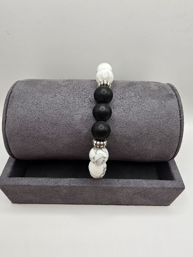 Mens Howlite & Black Onyx Bracelet.